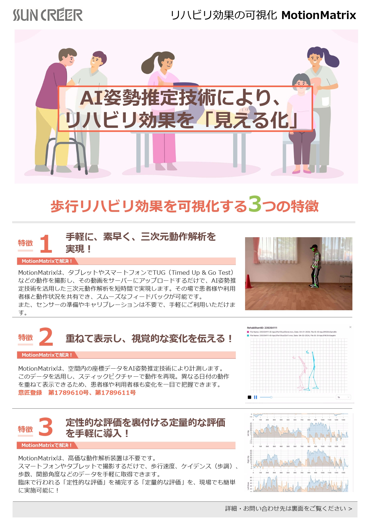 このサービスにより、リハビリ効果の定量的評価が可能となり、患者と医療従事者双方にとって大きなメリットがあります。