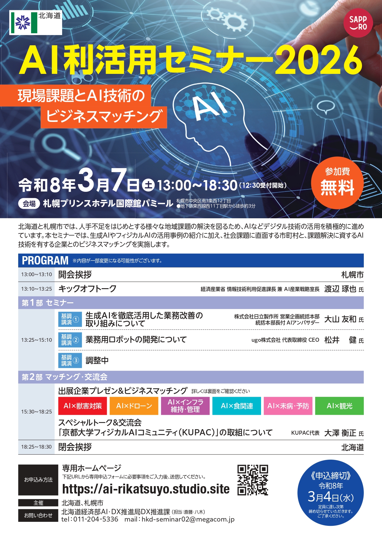 申込方法は下記のURLよりご確認下さい。(申込締切:令和8年3月4日)